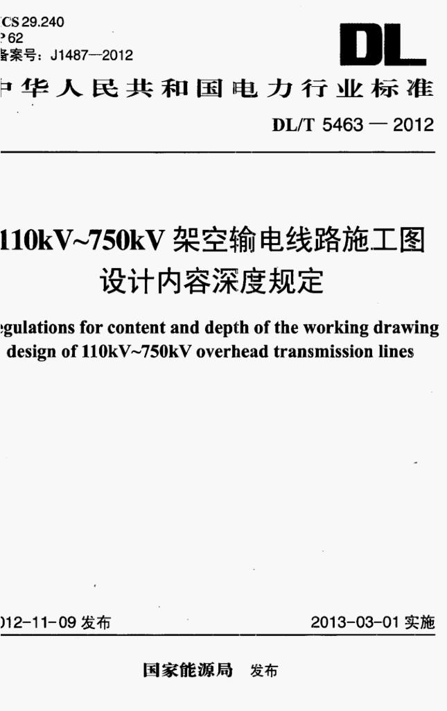 DL/T 5463-2012 110kV~750kV架空输电线路施工图设计内容深度规定