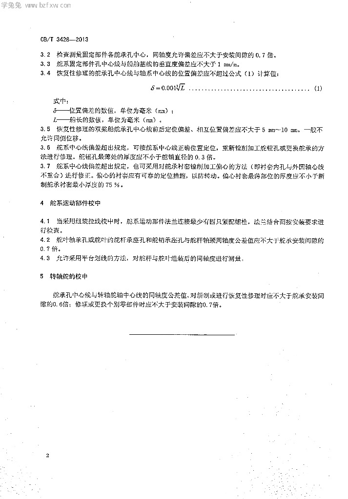 CB/T 3428-2013 船舶舵系修理中心线定位及校中技术要求