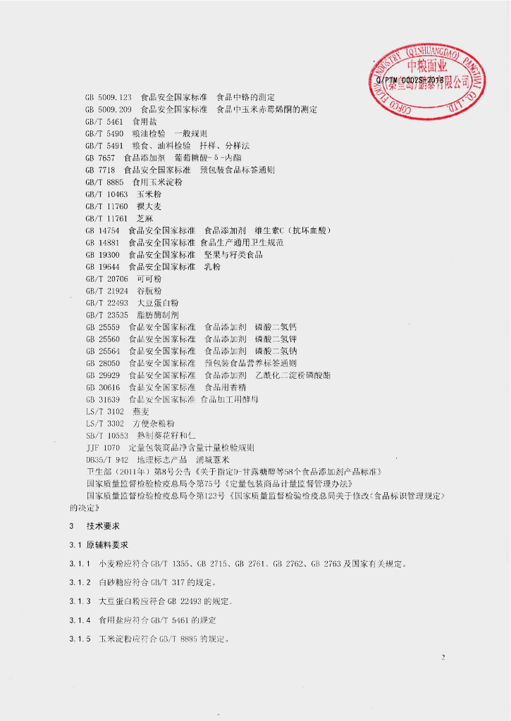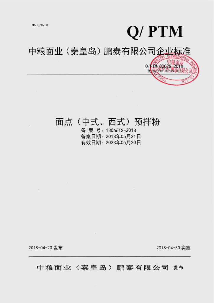 Q/PTM 0002S-2018 面点(中式、西式)预拌粉