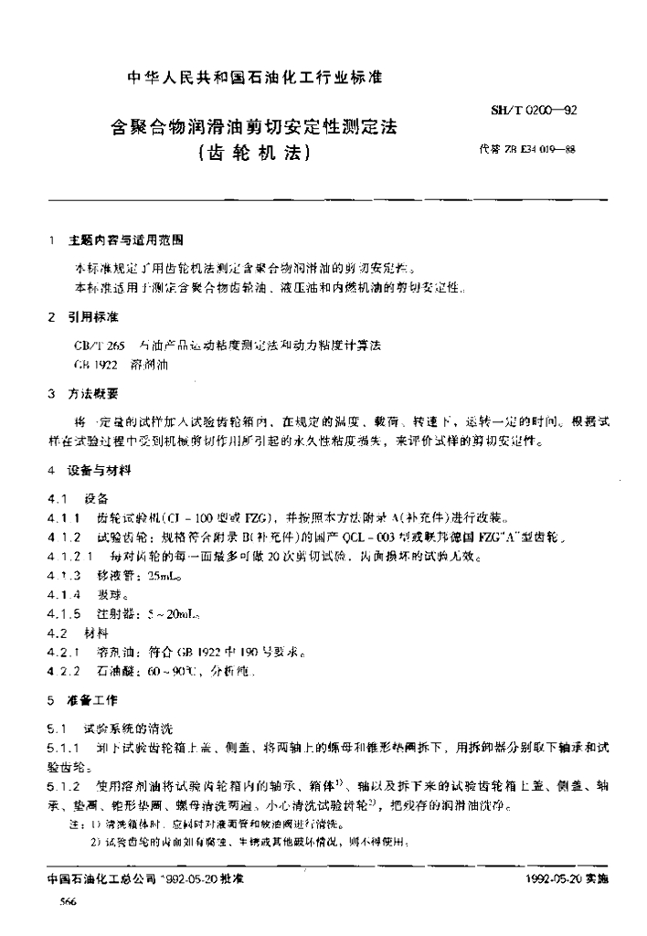 SH/T 0200-1992 含聚合物润滑油剪切安定性测定法(齿轮机法)