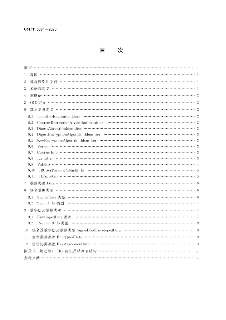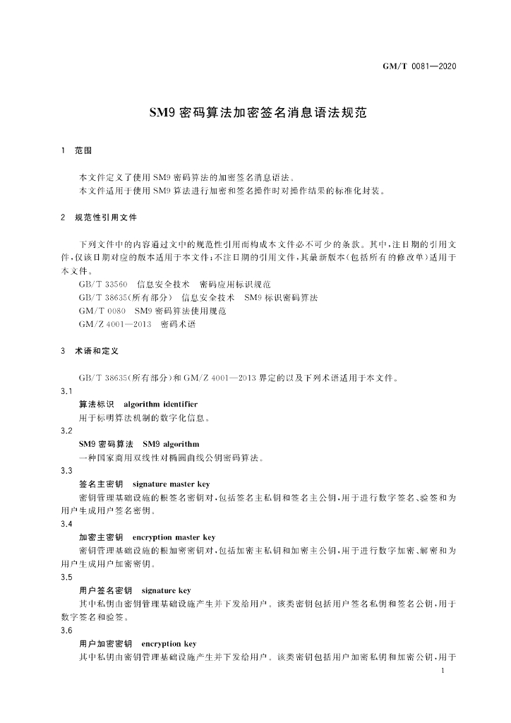 GM/T 0081-2020 SM9密码算法加密签名消息语法规范