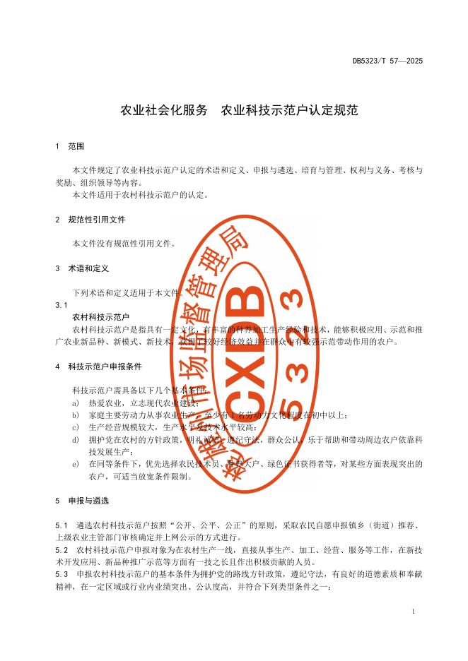 DB5323/T 57-2025 农业社会化服务 农业科技示范户认定规范