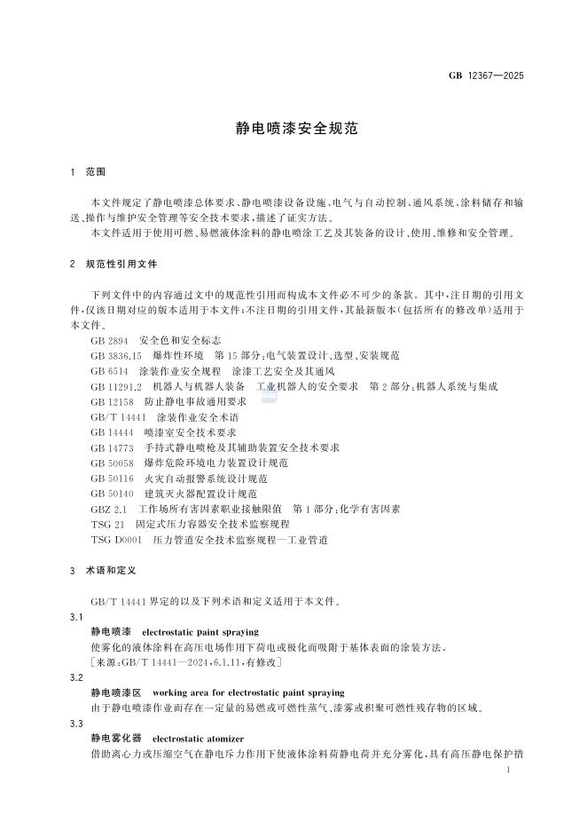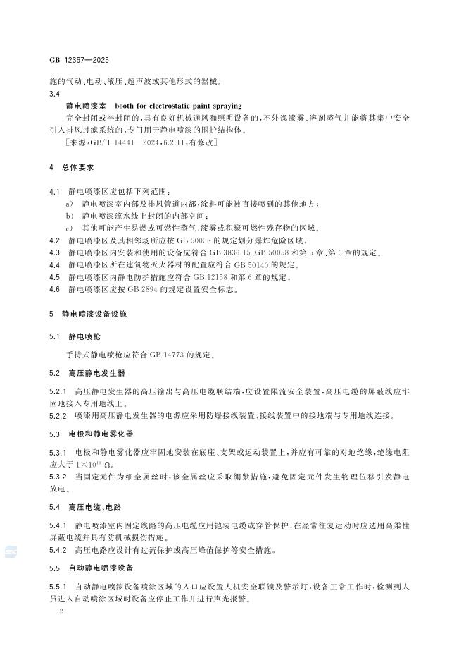 GB 12367-2025 静电喷漆安全规范