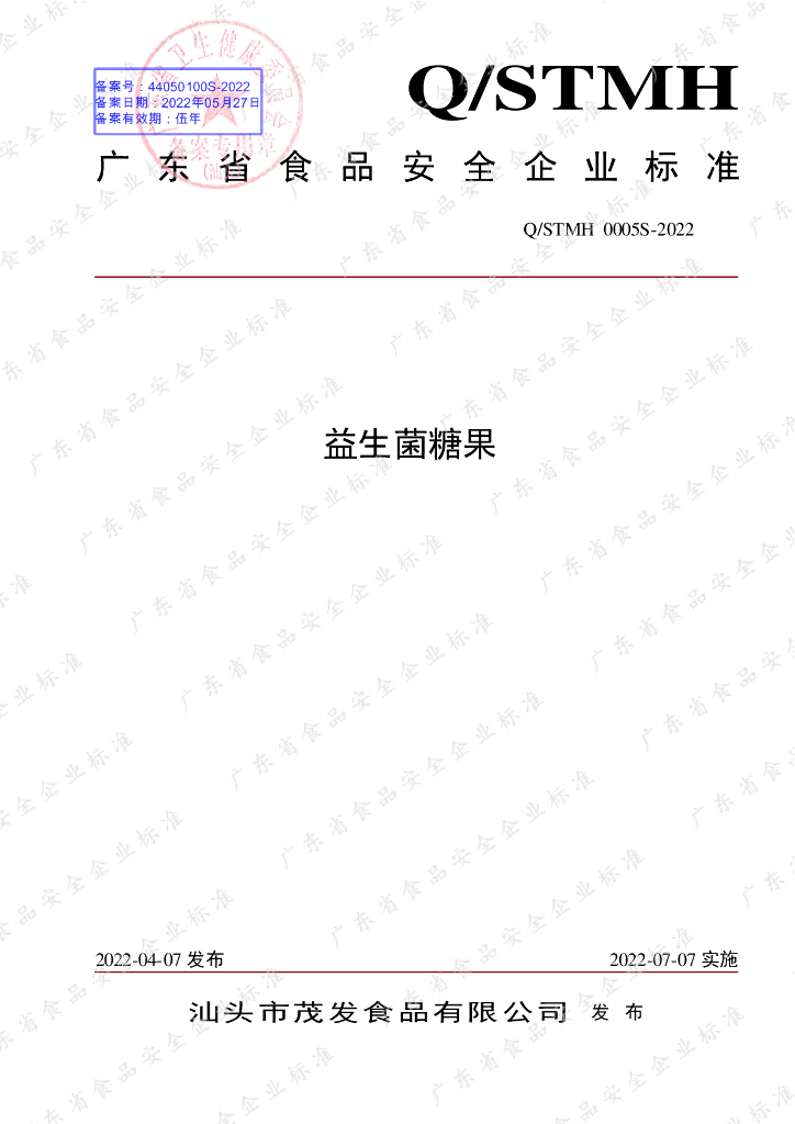 Q/STMH 0005S-2022 益生菌糖果