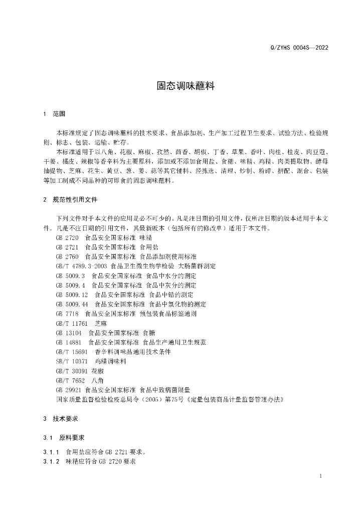 Q/ZYHS 0004S-2022 固态调味蘸料