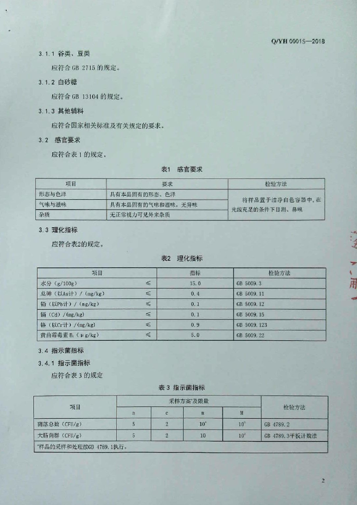 Q/YH 0001S-2018 方便粮食制品