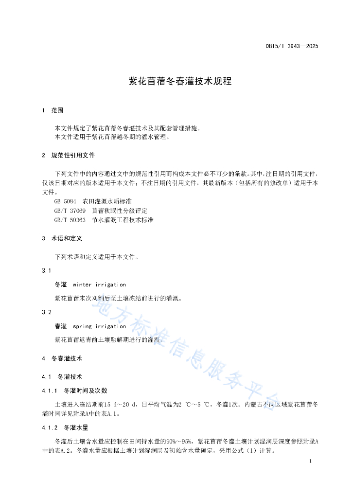 DB15/T 3943-2025 紫花苜蓿冬春灌技术规程