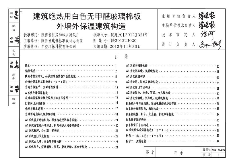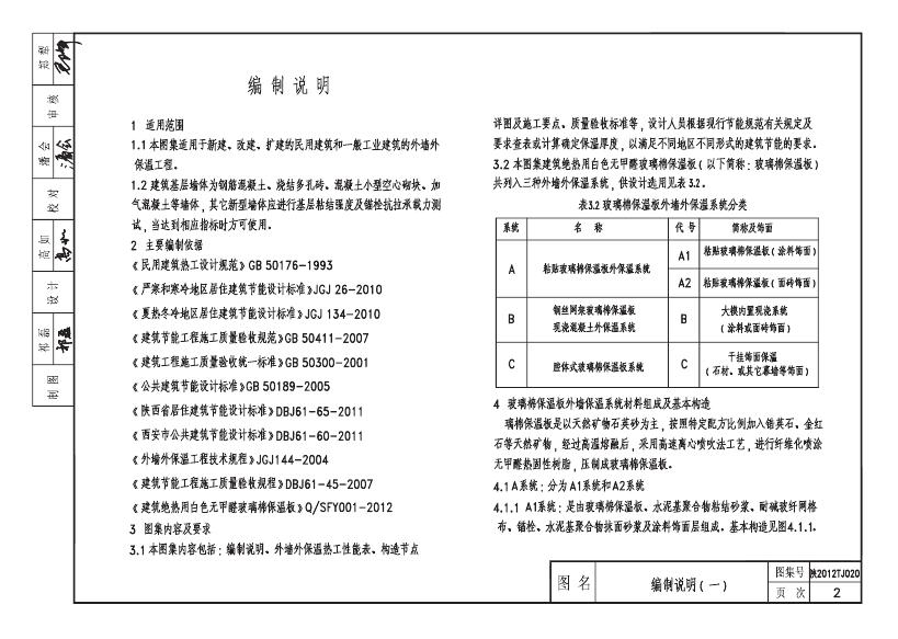 陕2012TJ020 建筑绝热用白色无甲醛玻璃棉板外墙外保温建筑构造图集