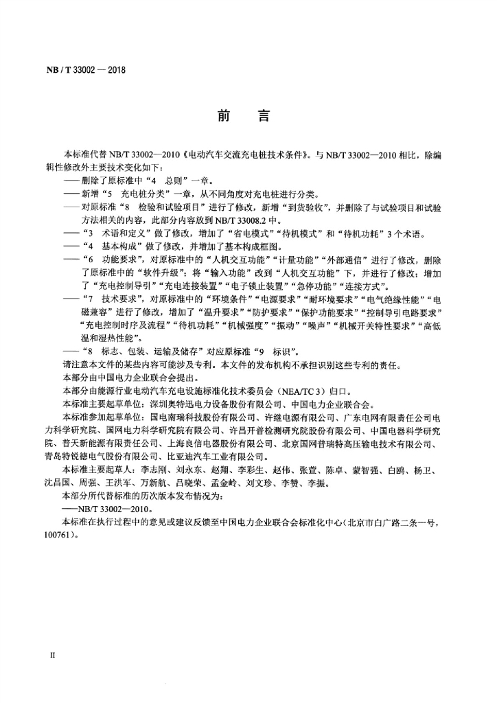 NB/T 33002-2018 电动汽车交流充电桩技术条件