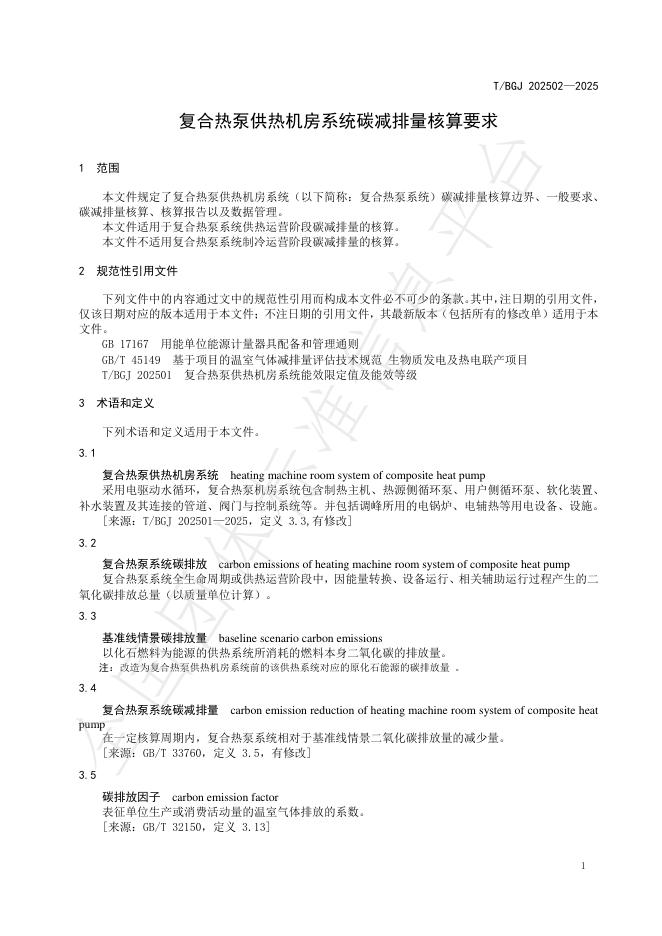 T/BGJ 202502-2025 复合热泵供热机房系统碳减排量核算要求
