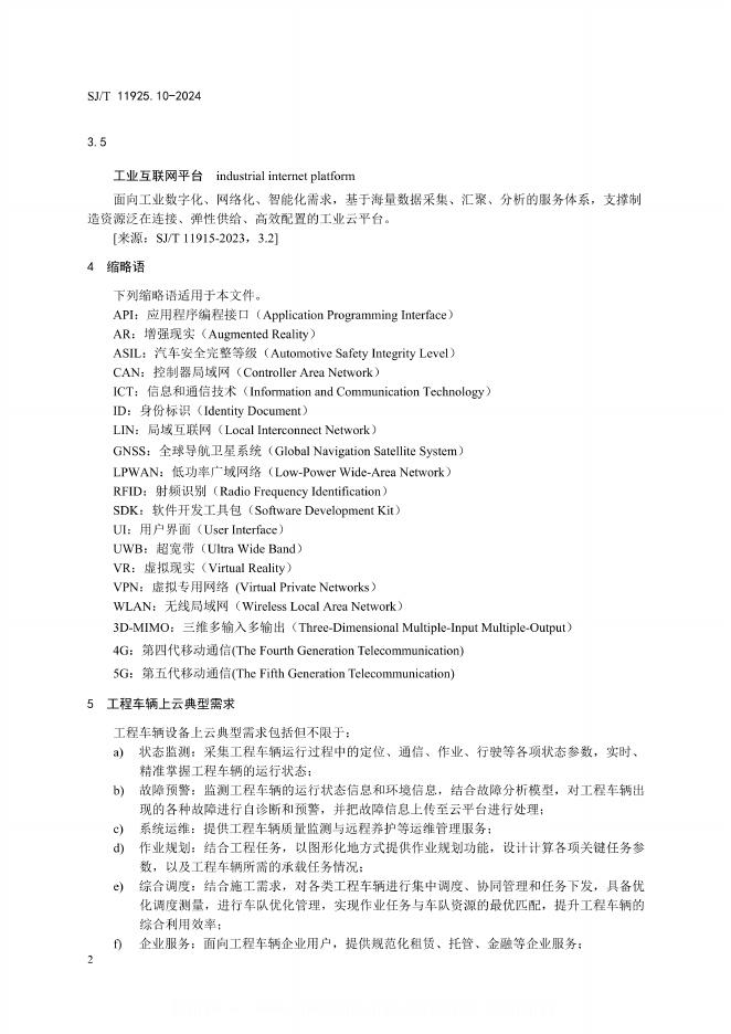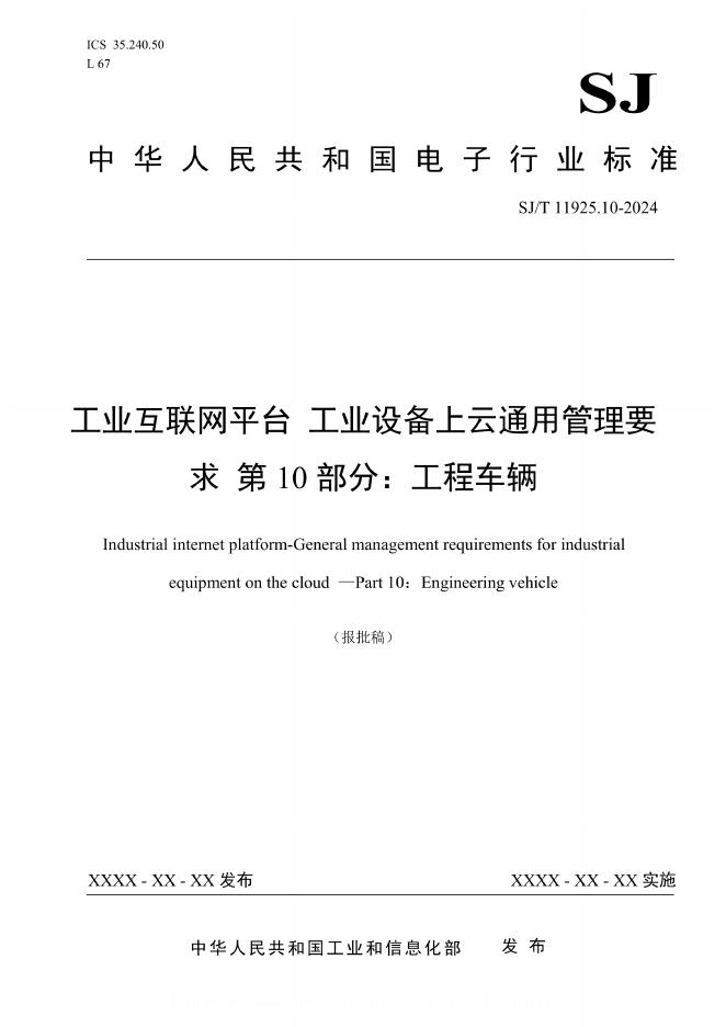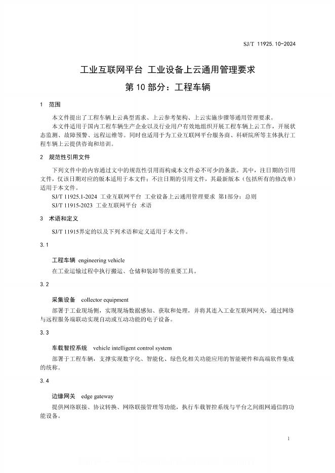 SJ/T 11925.10-2024 工业互联网平台 工业设备上云通用管理要求 第10部分:工程车辆(报批稿)