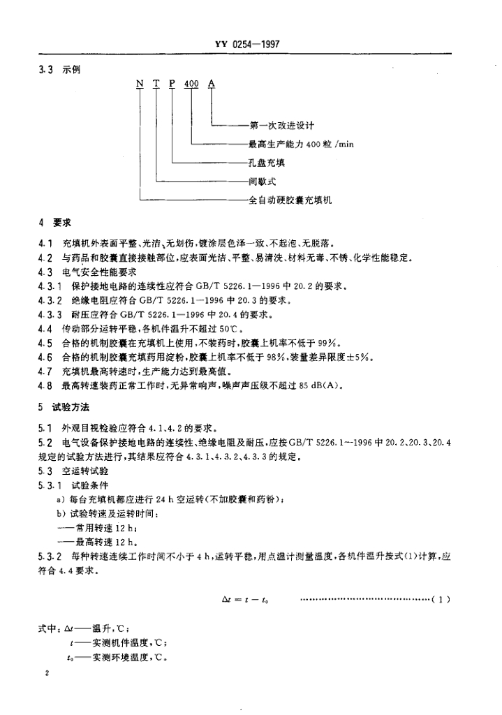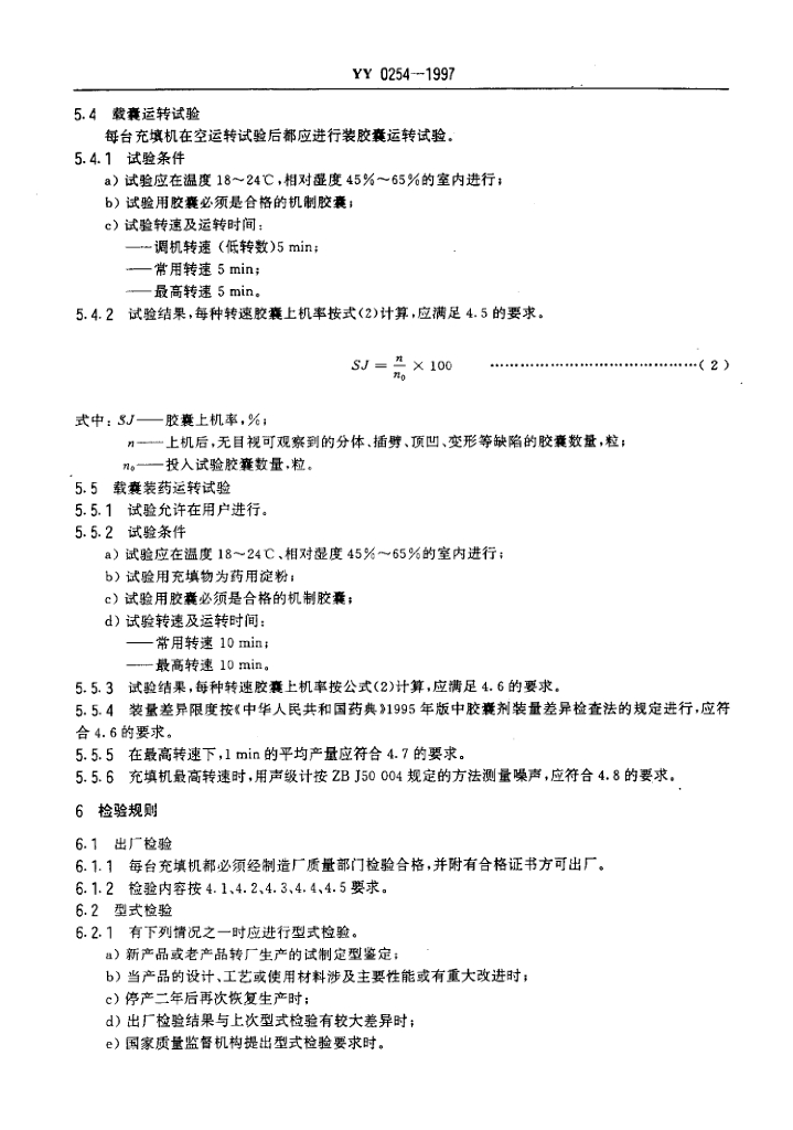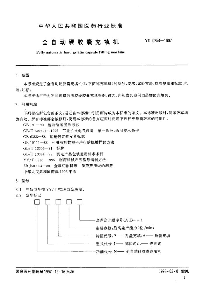 YY 0254-1997 全自动硬胶囊充填机