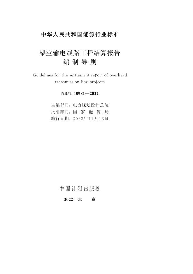 NB/T 10981-2022 架空输电线路工程结算报告编制导则