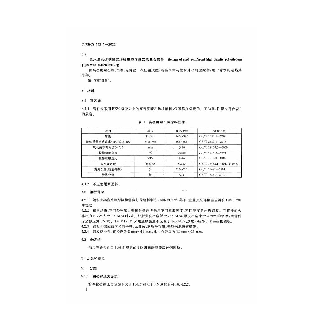 T/CECS 10211-2022 给水用电熔钢骨架增强高密度聚乙烯复合管件