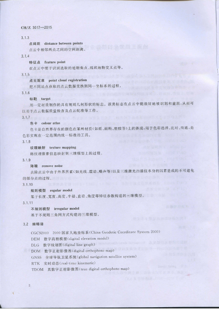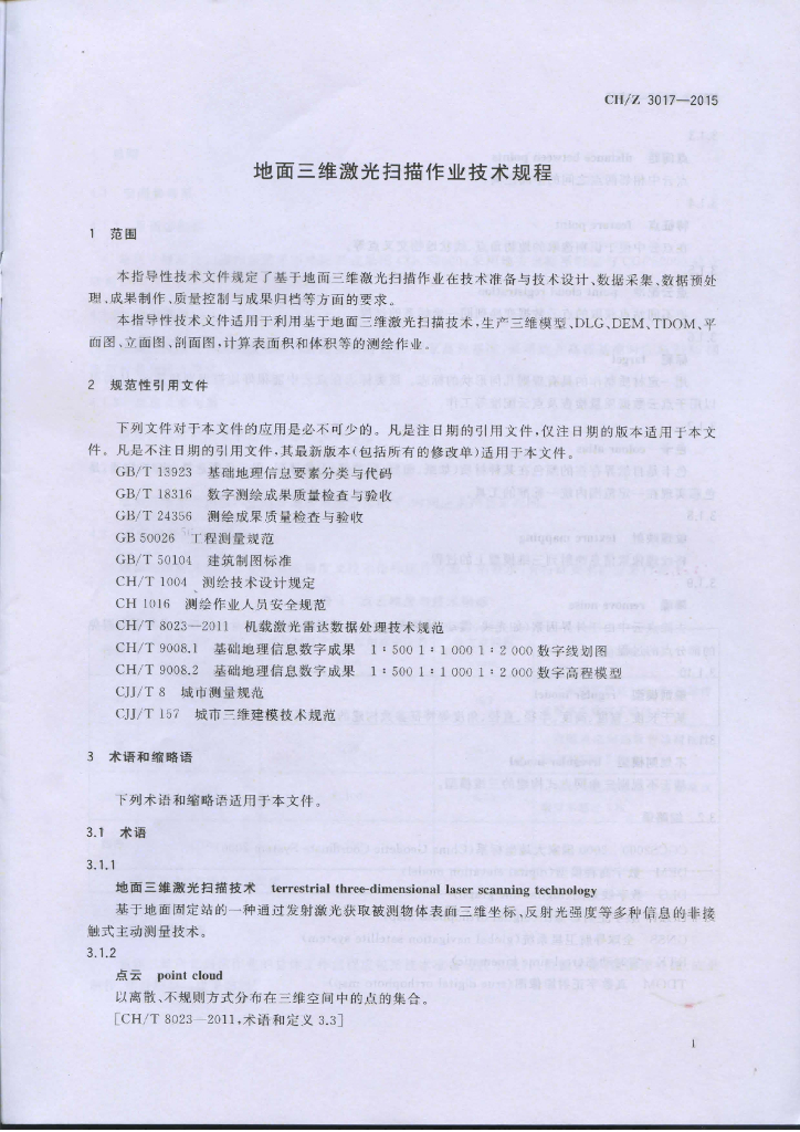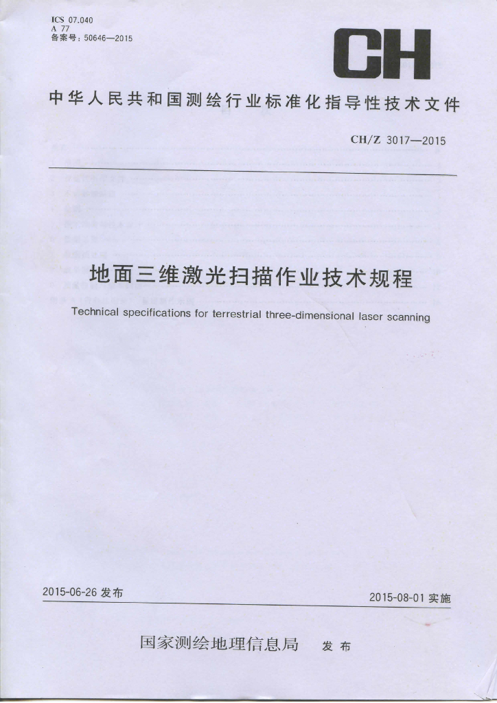 CH/Z 3017-2015 地面三维激光扫描作业技术规程