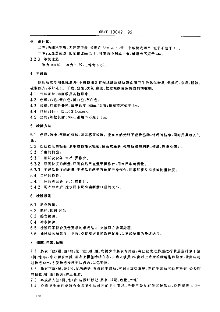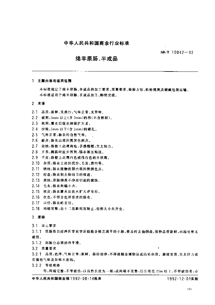 SB/T 10042-1992 绵羊原肠、半成品