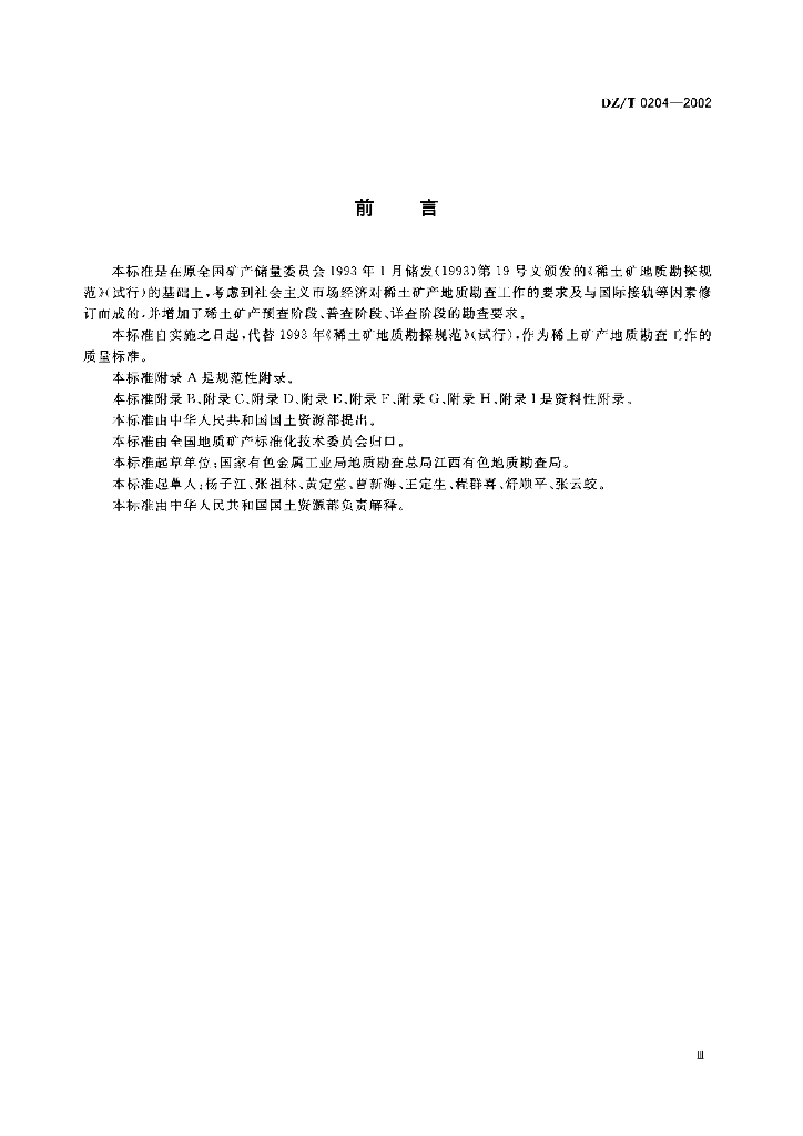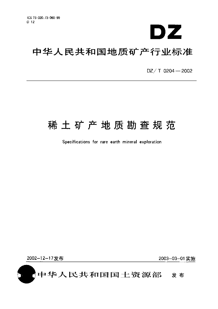 DZ/T 0204-2002 稀土矿产地质勘查规范