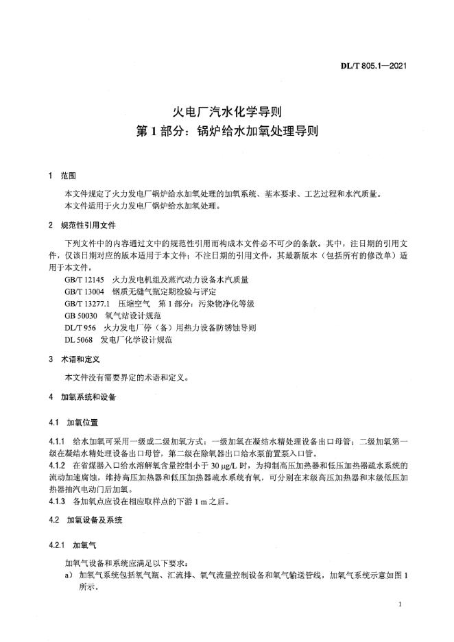 DL/T 805.1-2021 火电厂汽水化学导则 第1部分:锅炉给水加氧处理导则