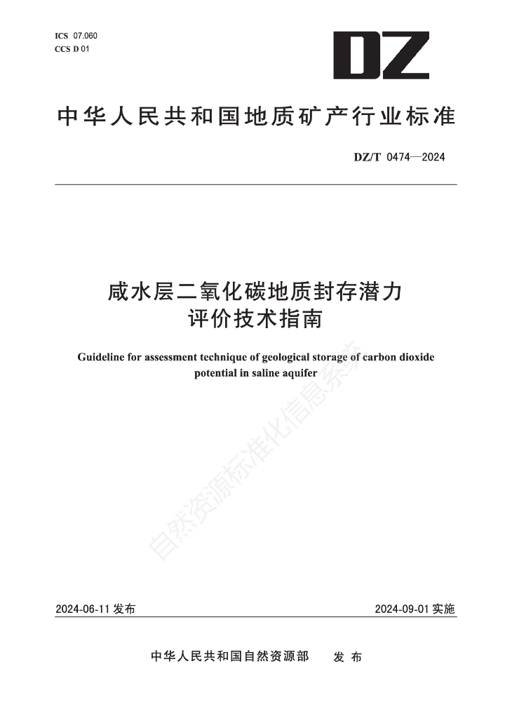 DZ/T 0474-2024 咸水层二氧化碳地质封存潜力评价技术指南