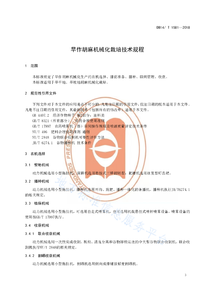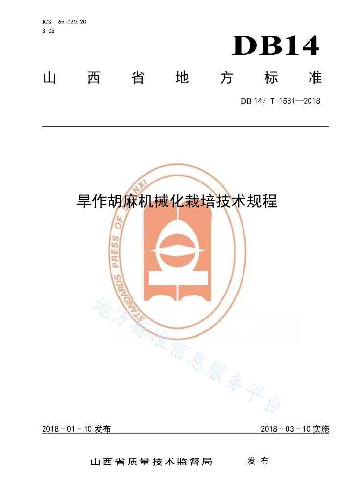 DB14/T 1581-2018 旱作胡麻机械化栽培技术规程