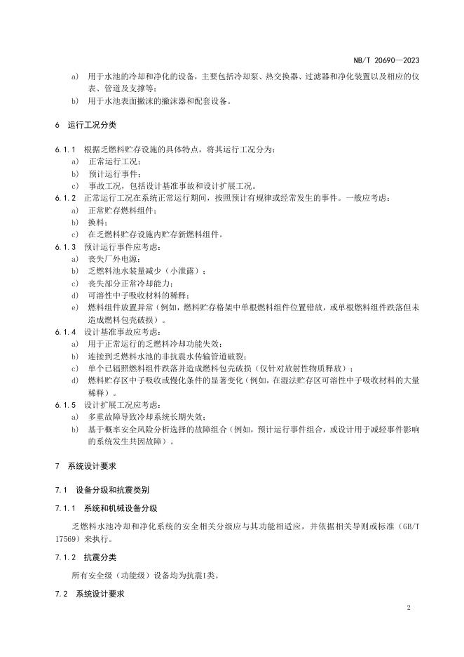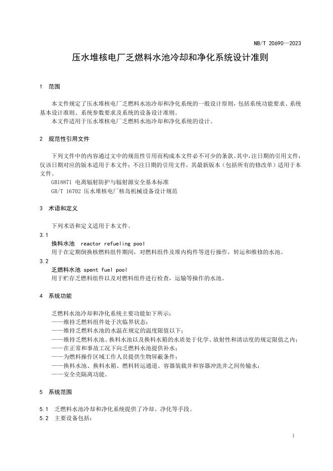 NB/T 20690-2023 压水堆核电厂乏燃料水池冷却和净化系统设计准则