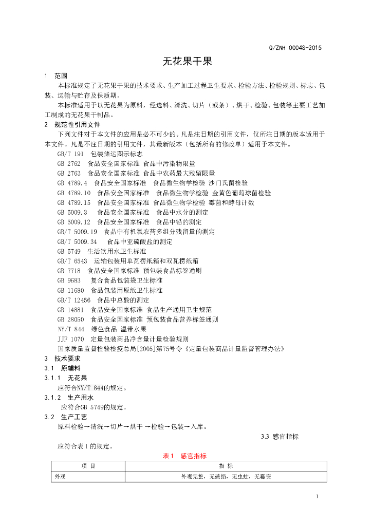 Q/ZNH 0004S-2015 邹平县台子镇尚志无花果农民专业合作社食品加工厂 无花果干果