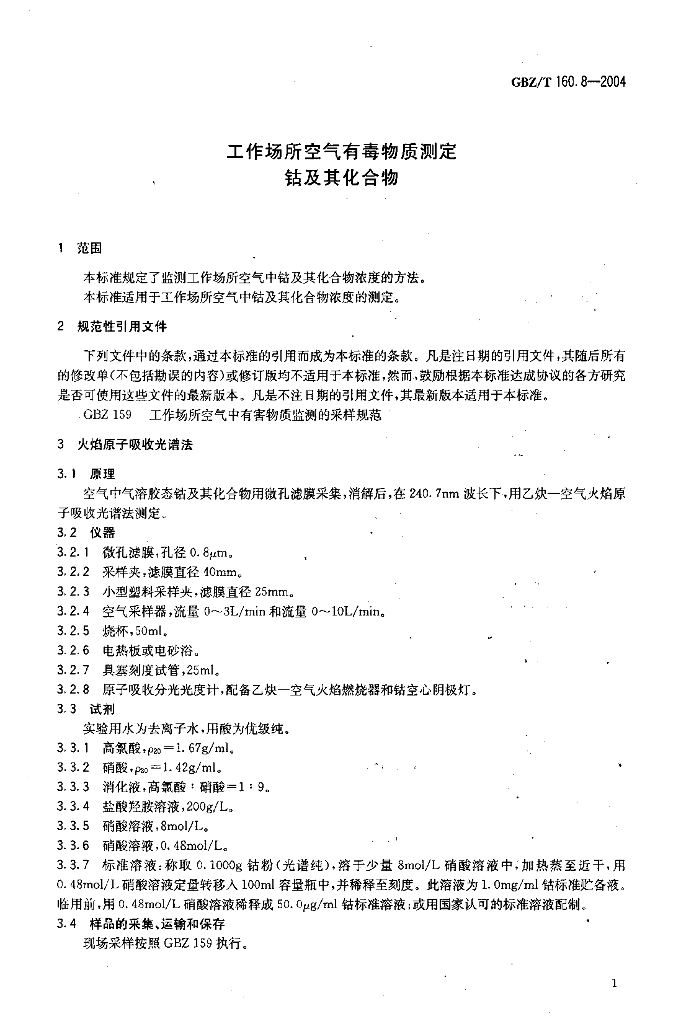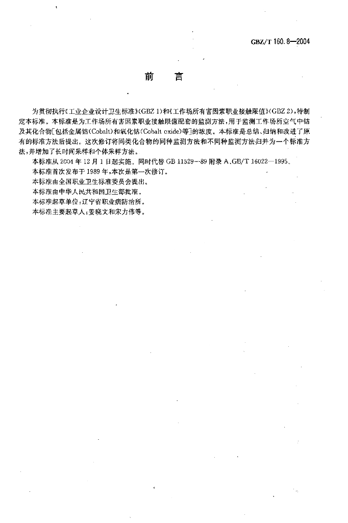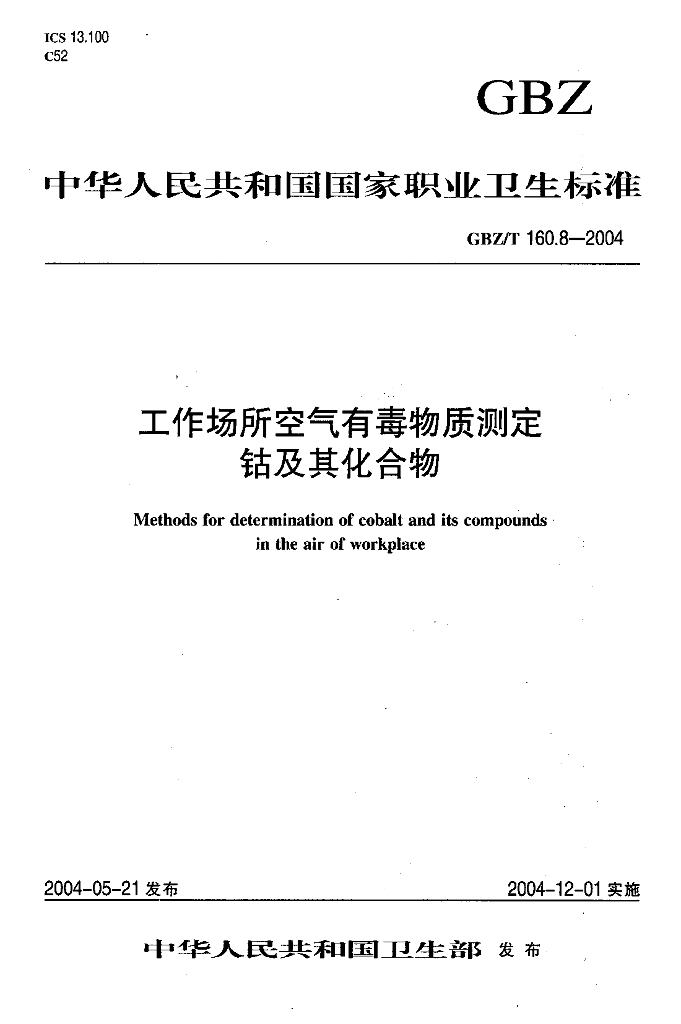 GBZ/T 160.8-2004 工作场所空气有毒物质测定 钴及其化合物
