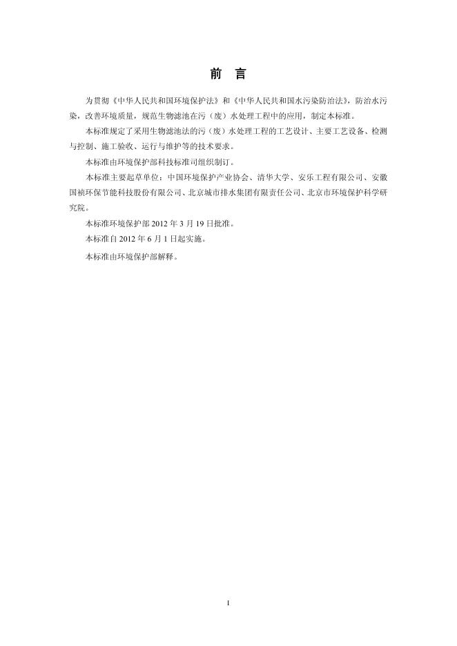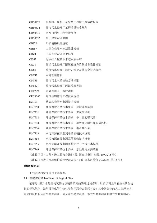 HJ 2014-2012 生物滤池法污水处理工程技术规范