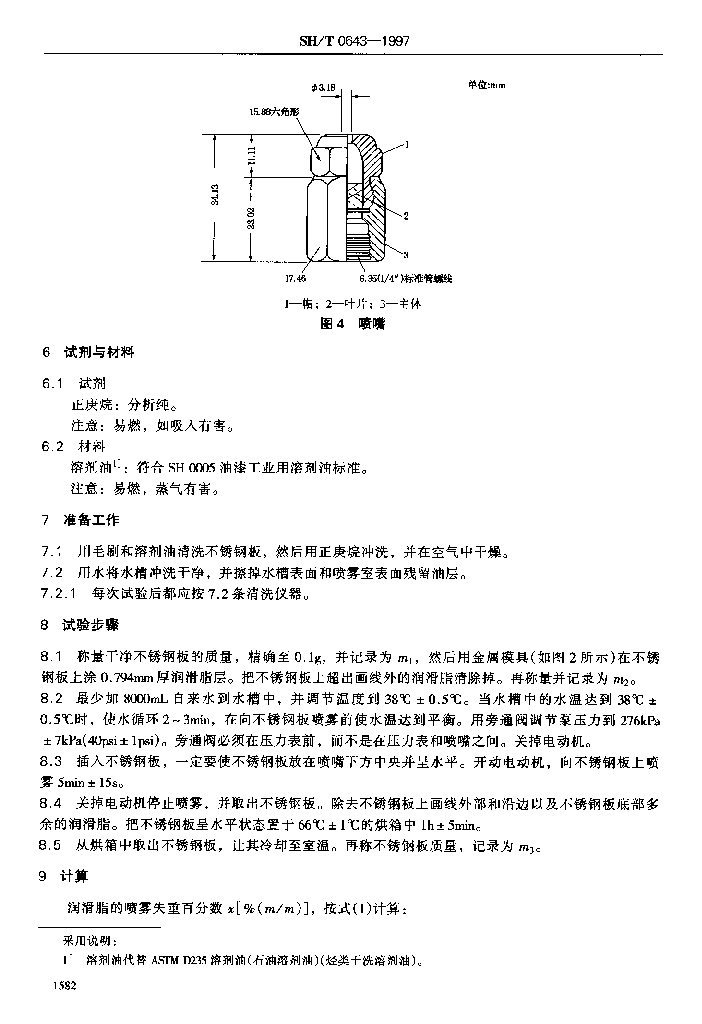 SH/T 0643-1997 润滑脂抗水喷雾性测定法