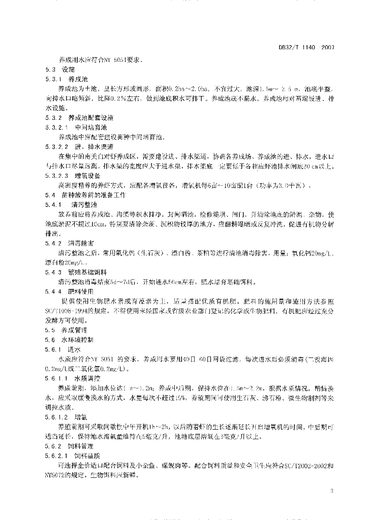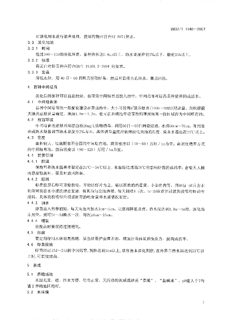 DB32/T 1140-2007 南美白对虾淡水养殖技术规范