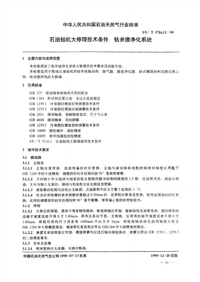 SY/T 5716.11-1995 石油钻机大修理技术条件钻井液净化系统