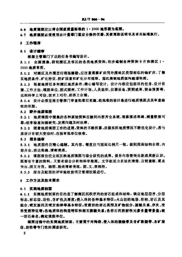 EJ/T 866-1994 铀矿地质填图规范(1:2000)