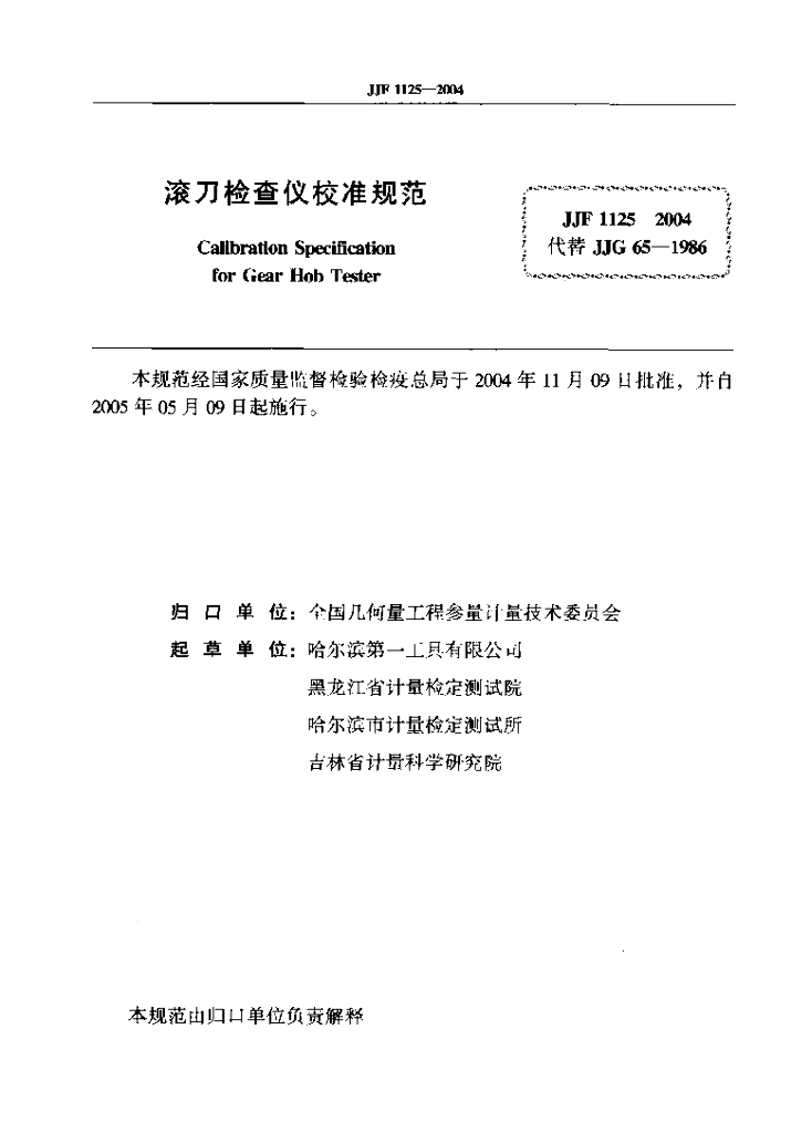 孙醒凡(哈尔滨第一工具有限公司)、李玉英(哈尔滨第一工具有限公司)、王利(哈尔滨市计量检定测试所)、马荃(黑龙江省计量检定测试院)、马钟焕(吉林省计量科学研究院)