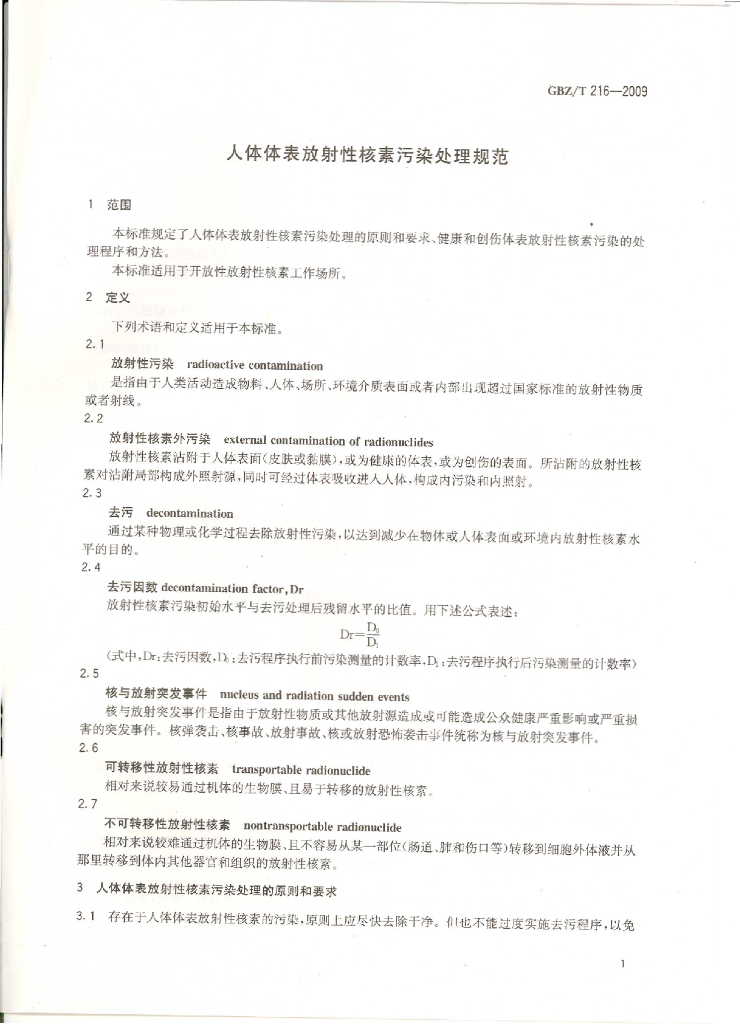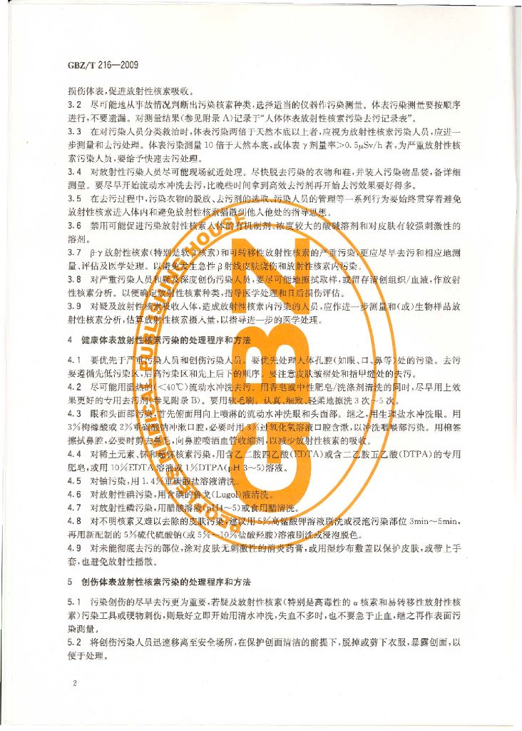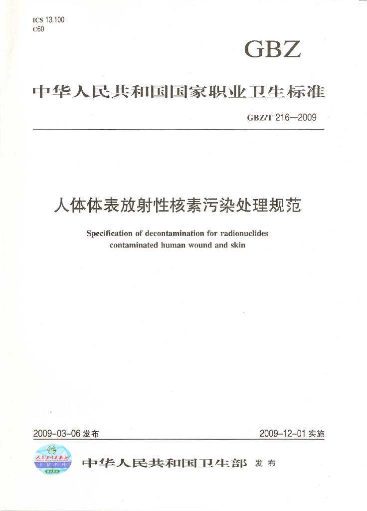 GBZ/T 216-2009 人体体表放射性核素污染处理规范