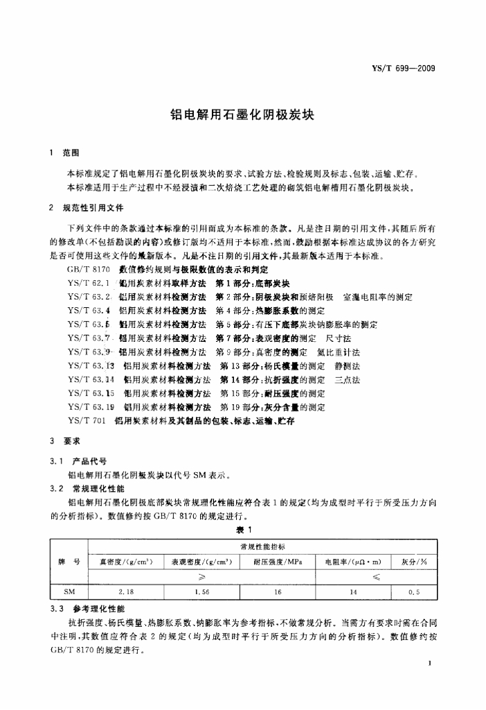 YS/T 699-2009 铝电解用石墨化阴极炭块