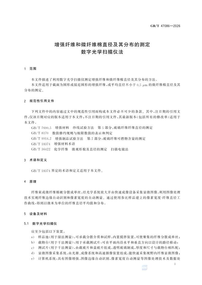 GB/T 47086-2026 增强纤维和微纤维棉直径及其分布的测定 数字光学扫描仪法