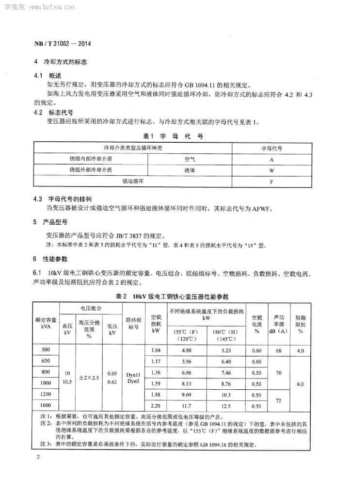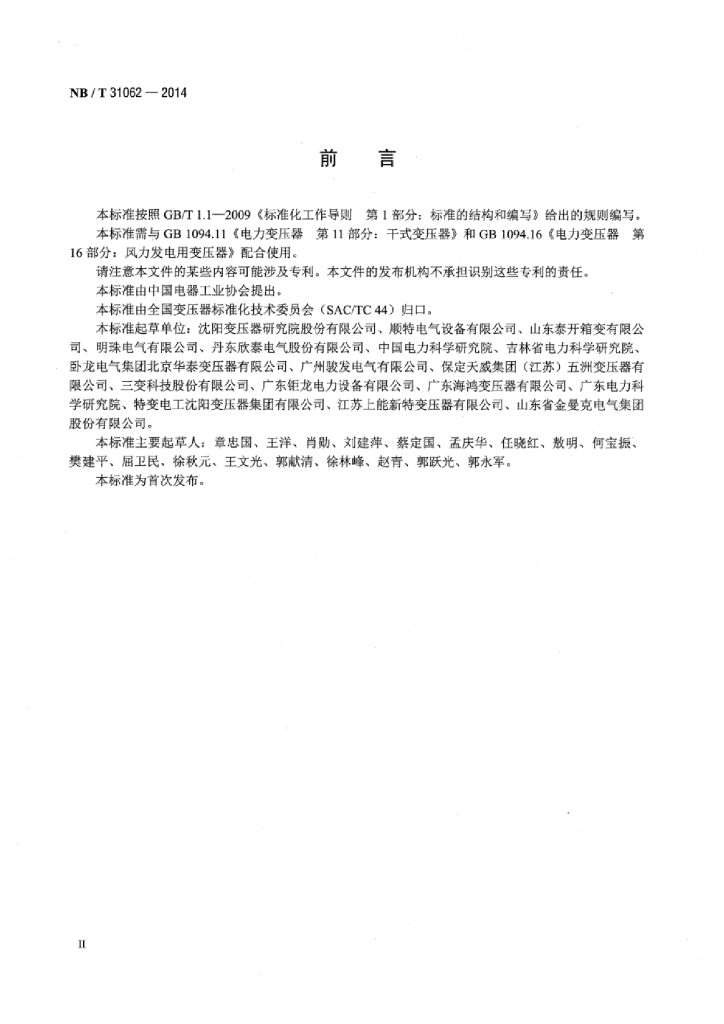 NB/T 31062-2014 风力发电用干式变压器技术参数和要求