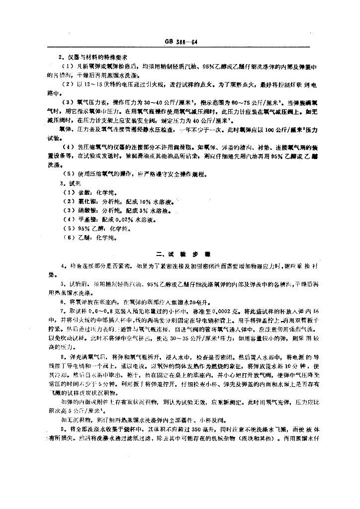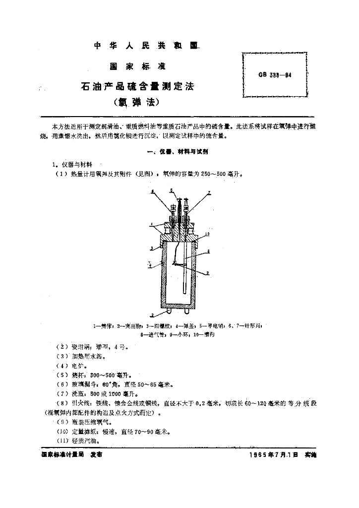 GB/T 388-1964 石油产品硫含量测定法 (氧弹法)