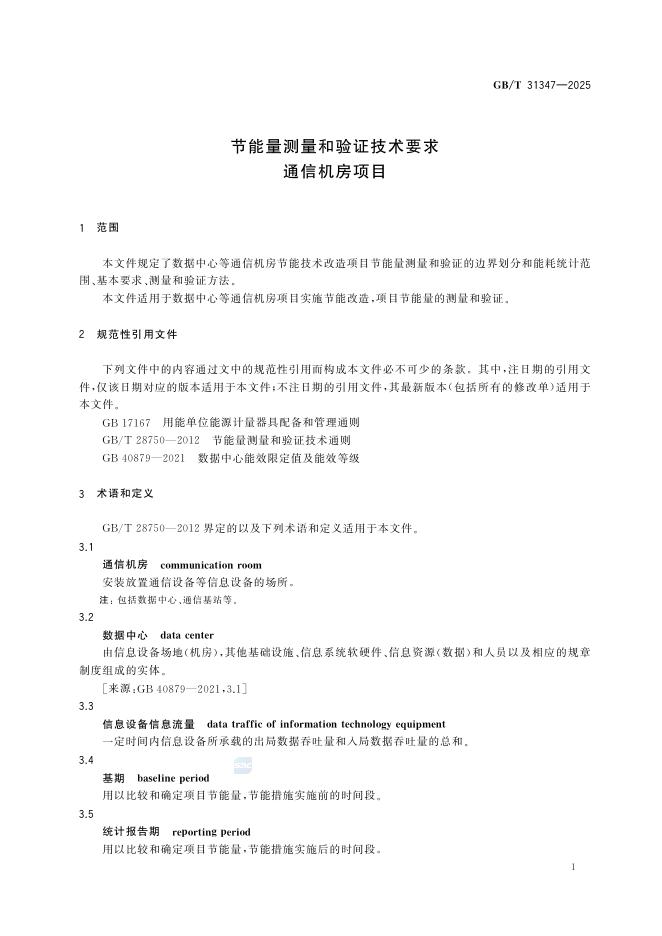 GB/T 31347-2025 节能量测量和验证技术要求 通信机房项目