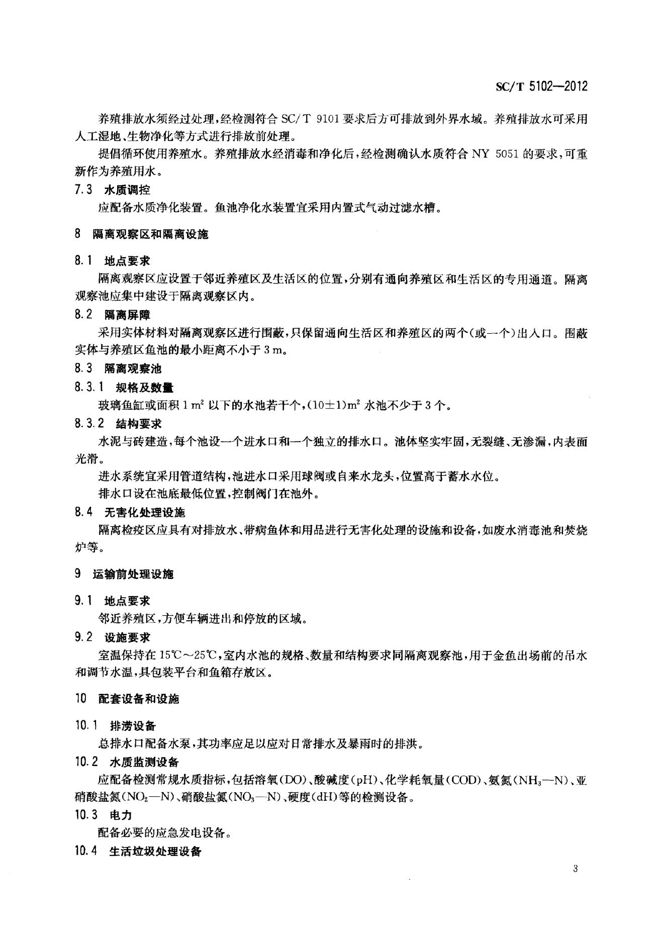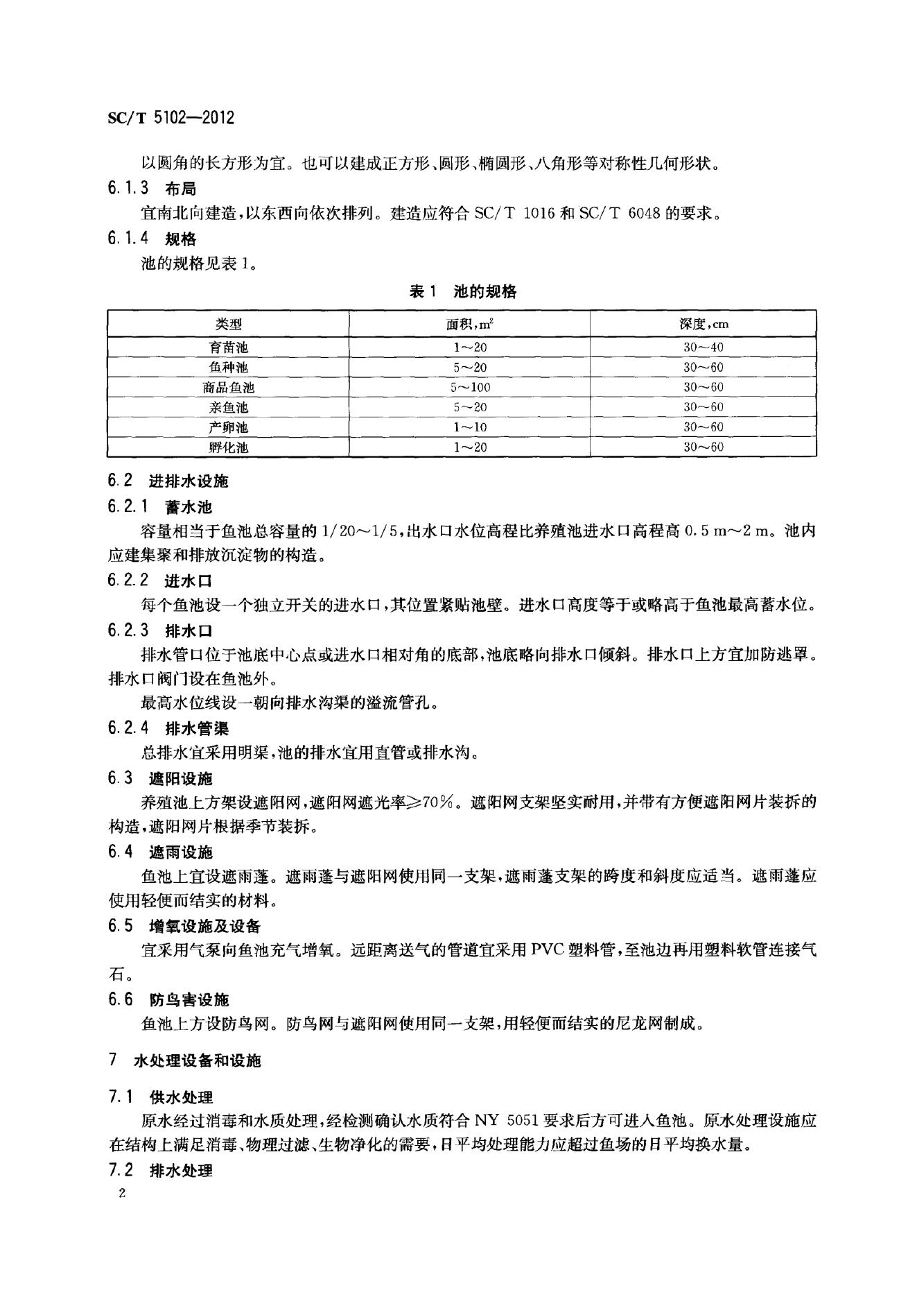 SC/T 5102-2012 观赏鱼养殖场条件 金鱼