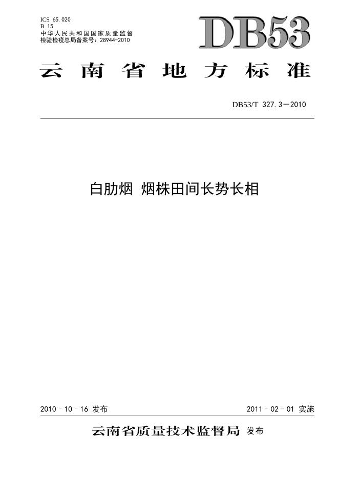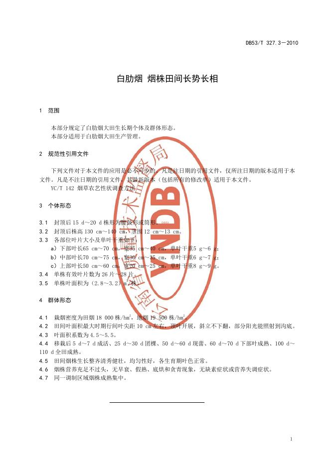 DB53/T 327.3-2010 白肋烟 烟株田间长势长相