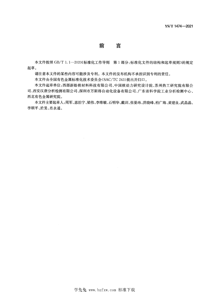 西部新锆核材料科技有限公司、中国核动力研究设计院、苏州热工研究院有限公司、西安汉唐分析检测有限公司、深圳市万斯得自动化设备有限公司、广东省科学院工业分析检测中心、西北有色金属研究院