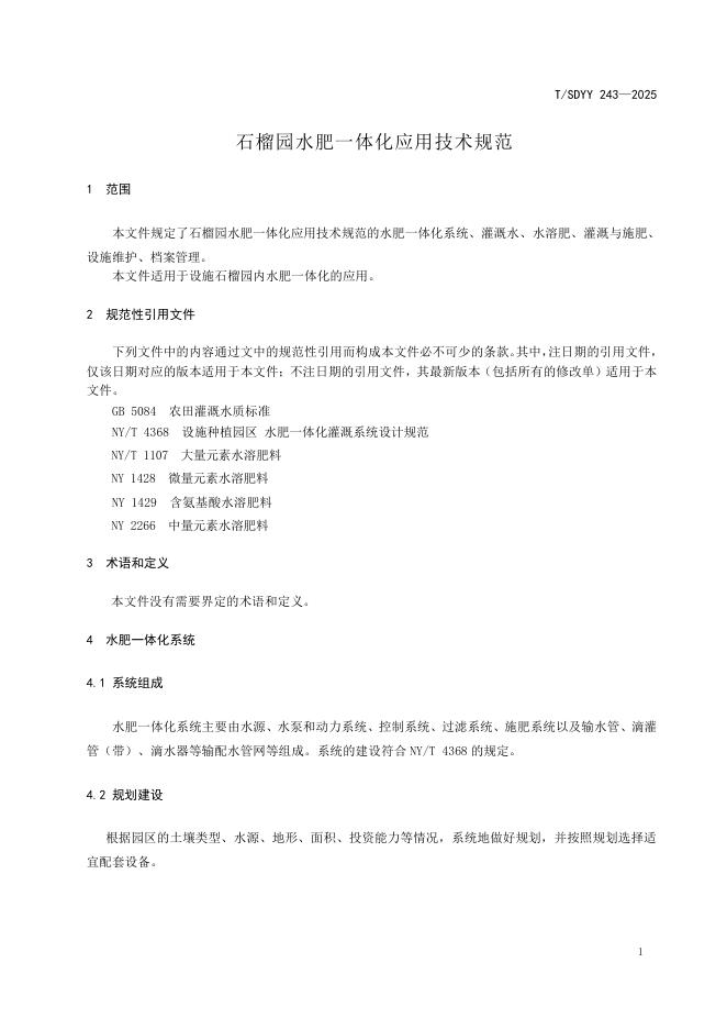 T/SDYY 243-2025 石榴园水肥一体化应用技术规范