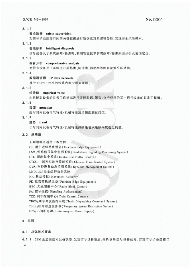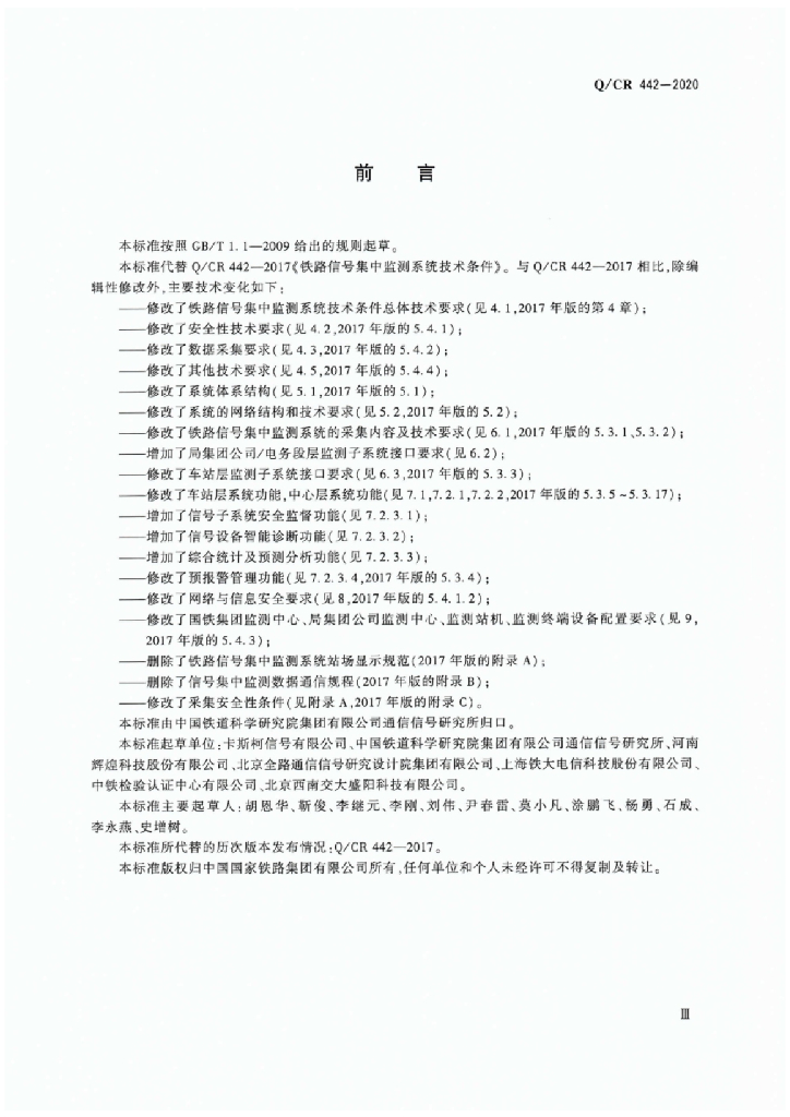 Q/CR 442-2020 铁路信号集中监测系统技术条件