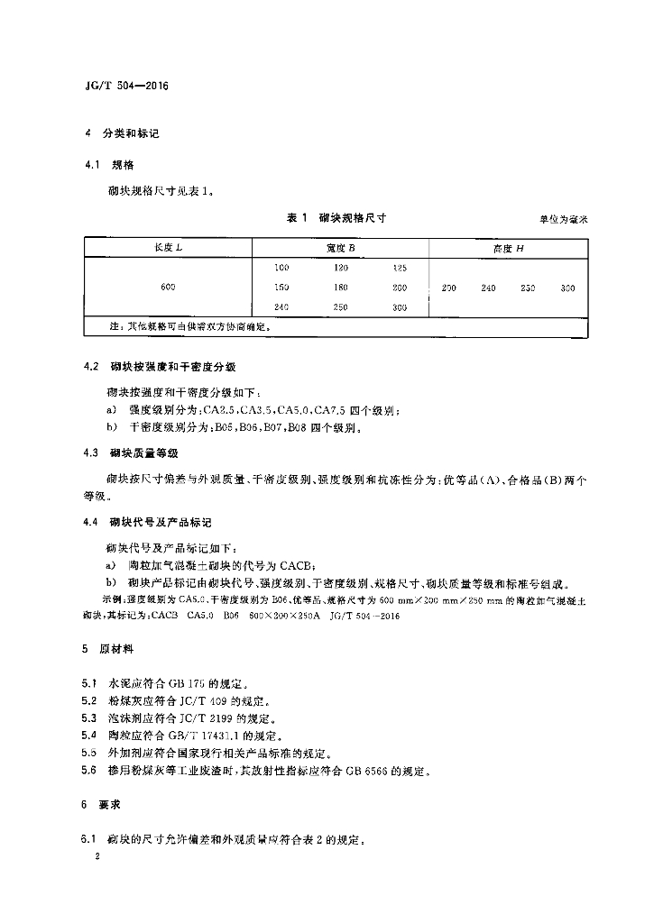 JG/T 504-2016 陶粒加气混凝土砌块