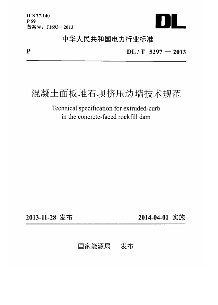 DL/T 5297-2013 混凝土面板堆石坝挤压边墙技术规范