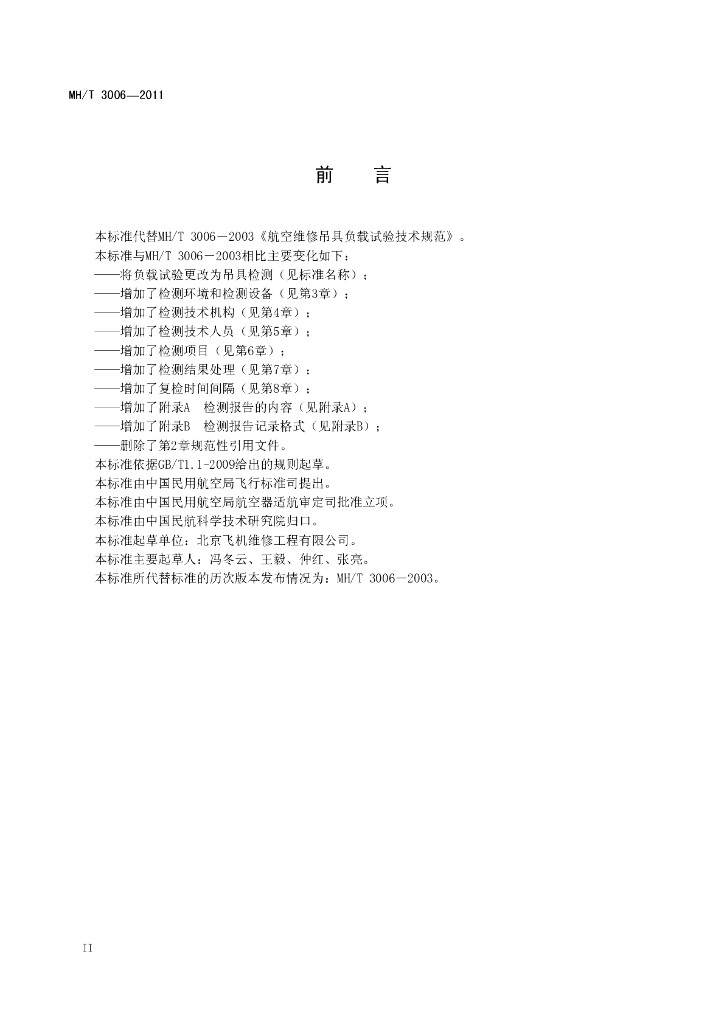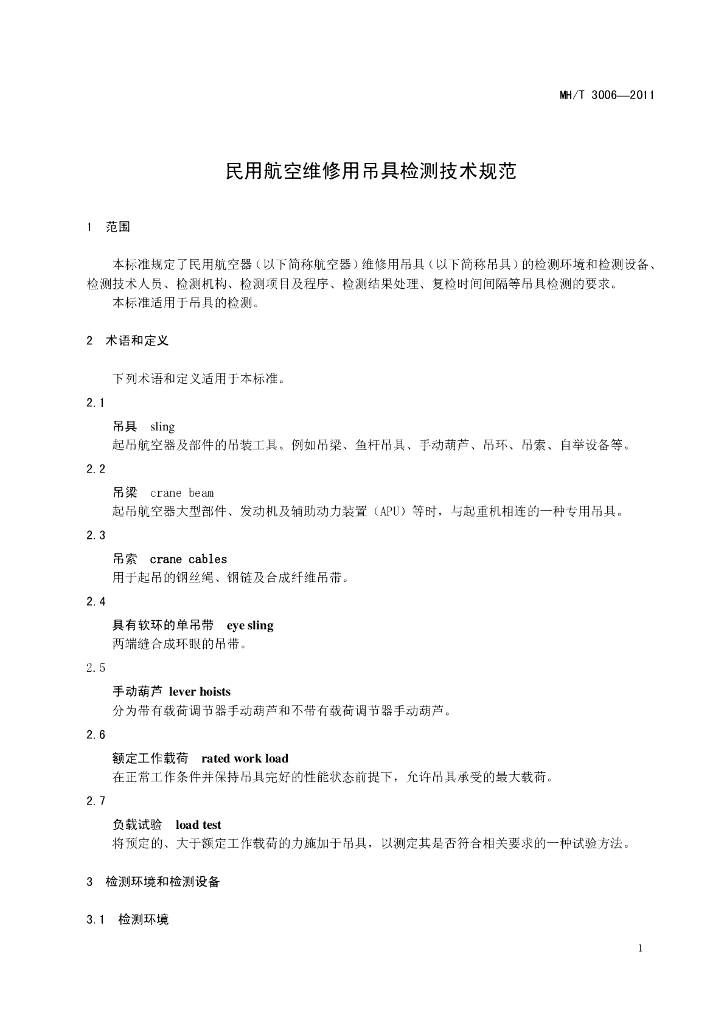MH/T 3006-2011 民用航空维修用吊具检测技术规范