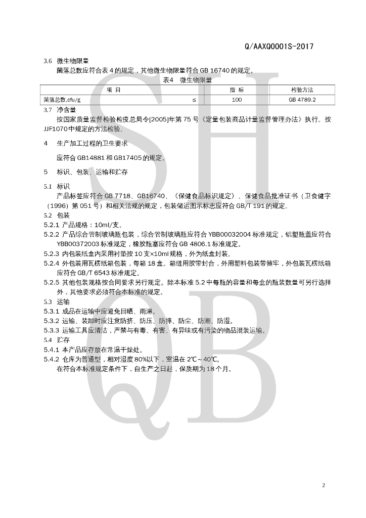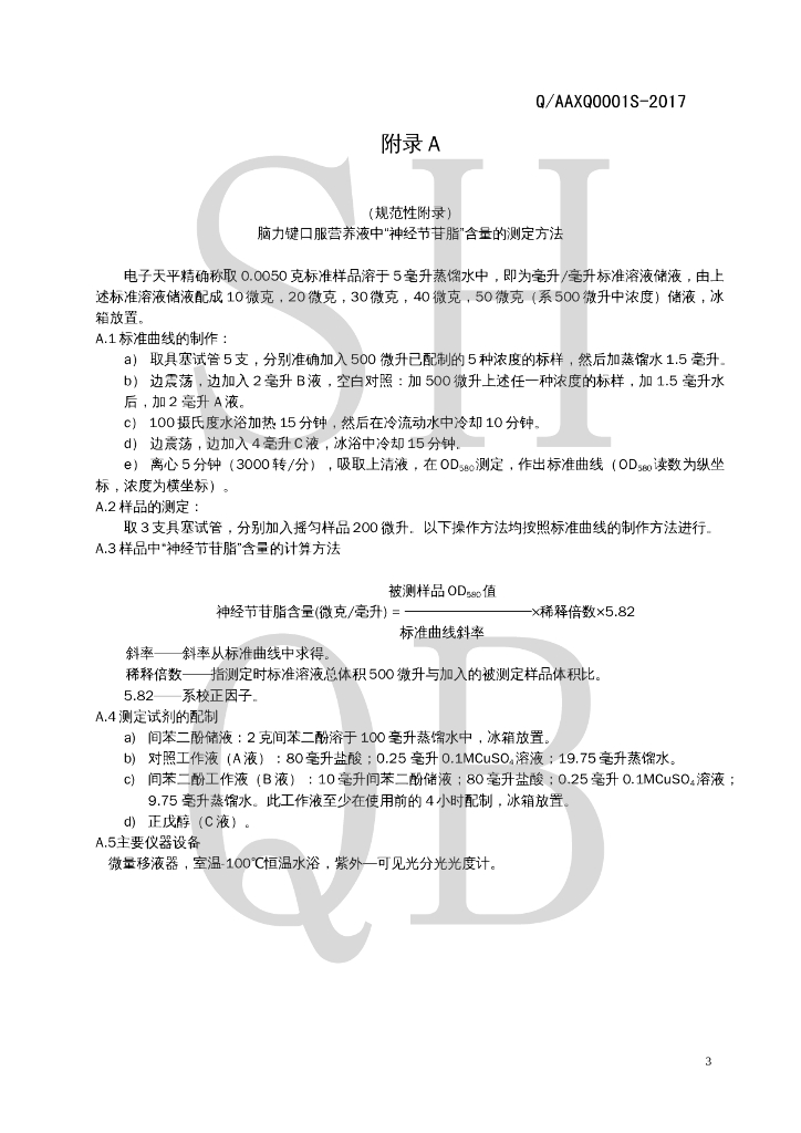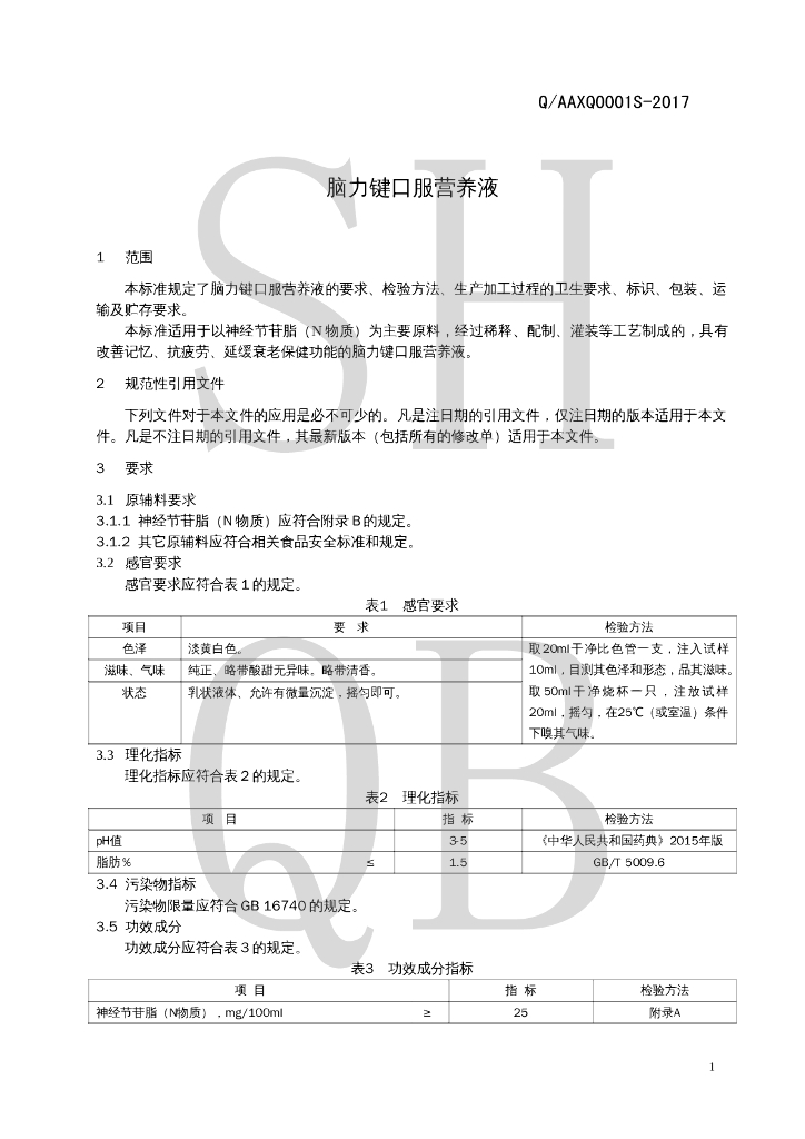 Q/AAXQ 0001S-2017 脑力键口服营养液