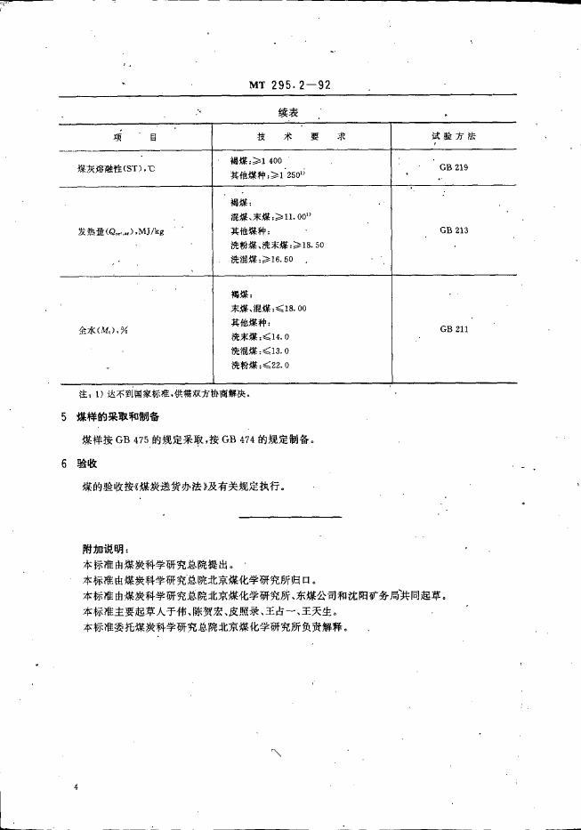 MT 295.2-1992 发电煤粉锅炉用沈阳矿务局煤技术条件