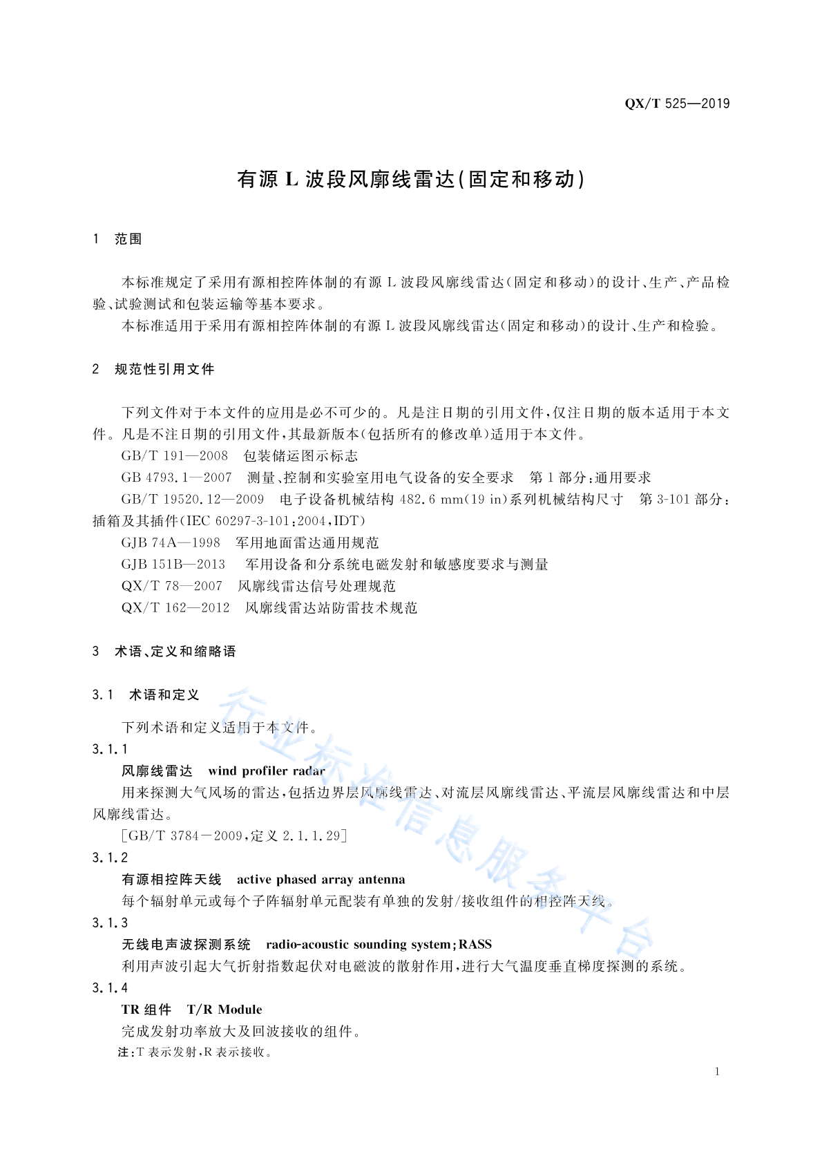 QX/T 525-2019 有源L波段风廓线雷达(固定和移动)